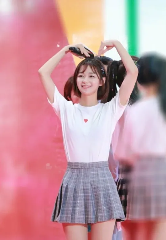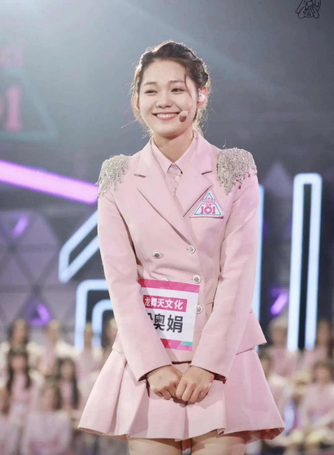 2018年,模样青涩的她,身着校服登上了《创造101》节目选秀现场。