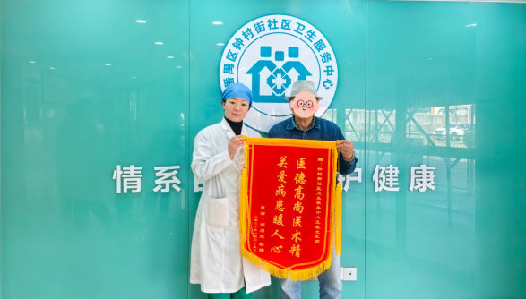 1月27日上午,钟村街社区卫生服务中心暖意融融。81岁的锦绣生态园居民颜叔,亲手将一面锦旗送到了家庭医生王晓光的手中。锦旗虽轻,情意深重,颜叔以最朴实的方式,向王晓光医生及其团队表达了由衷的感谢。这面锦旗,不仅是居民对社区卫生服务的认可,更彰显了家庭医生作为居民健康“守门人”的责任与担当。